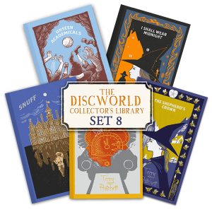 Begun by Terry Pratchett's first publishers Gollancz in 2014, and completed by Penguin Random House in 2021, the Discworld Collector's Library editions are finely printed and beautifully bound in embossed canvas-effect covers with metallic foil detailing that will add a touch of style & Pratchett magic to your bookshelves - the perfect gift for Discworld booklovers this Hogswatch!