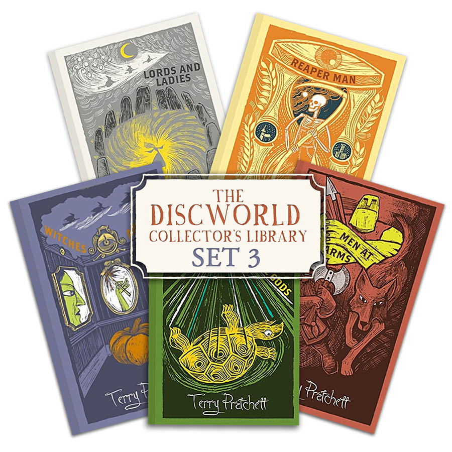 Books 11-15 of Terry Pratchett’s Discworld Series in one beautiful bundle of Discworld Library editions! Each set includes the following titles: