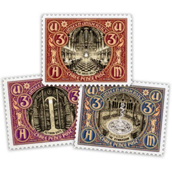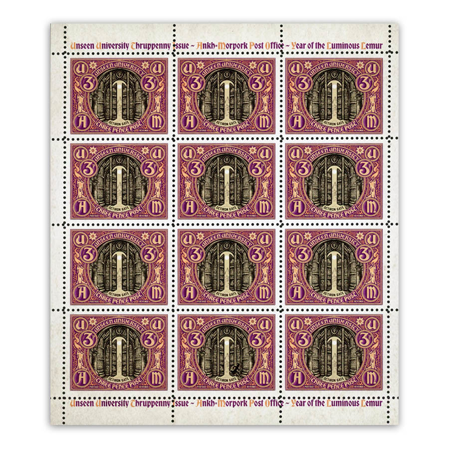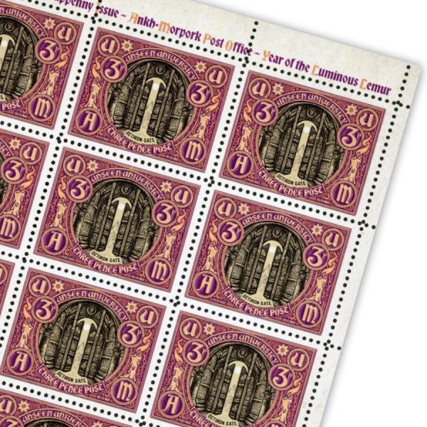 A magical issue from the Ankh-Morpork Post Office and Unseen University – peer into the inner sanctum of Discworld’s foremost college of magic with this sheet of stamps featuring a view of Unseen University’s Octiron Gate!
